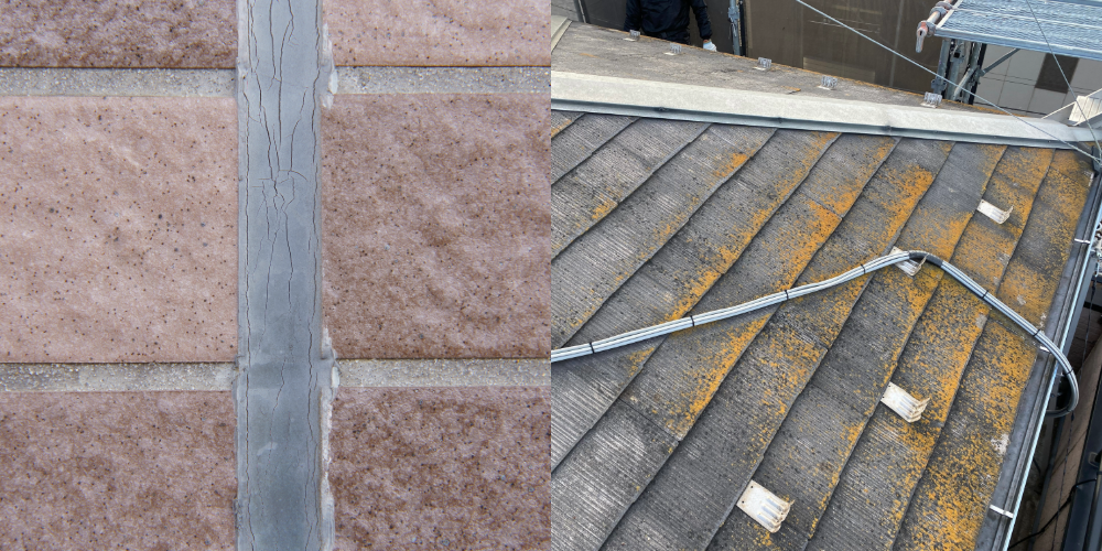 • 屋根や外壁、外壁の間のゴム状のもの(シーリング)にヒビ割れ・剥離がある